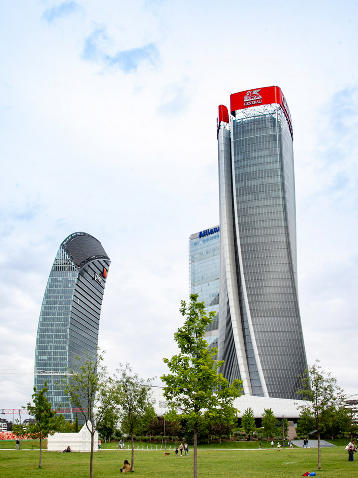 – CityLife, Quartiere moderno con grattacieli, parco e il centro commerciale CityLife Shopping District